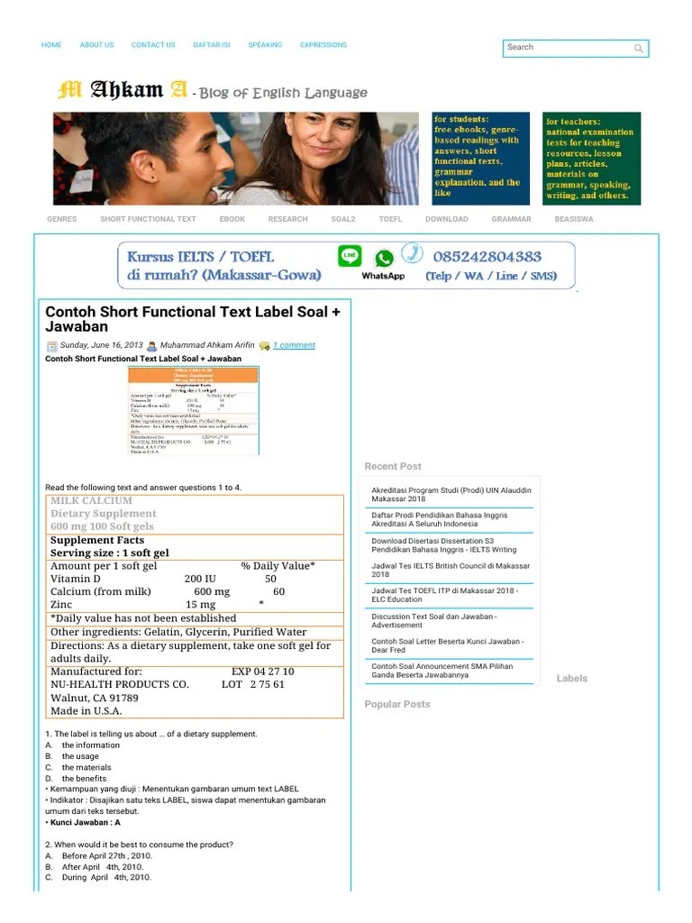 Soal dan kunci jawaban pilihan ganda ujian sekolah (us) bahasa inggris kelas xii sma/ma/smk 2016. Contoh advertisement atau iklan dalam bahasa inggris tentang event. Contoh soal announcements materi bahasa inggris. Sma hasyim asyari 1 pucuk . Contoh soal un bahasa inggris smp paket 3.